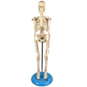 Esqueleto articulado de 45 cm que possibilita observar a composição óssea do corpo humano.