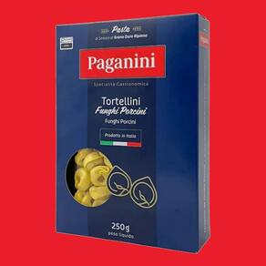 Tortellini ao Funghi Porcini PAGANINI 250g O Tortellini ao Funghi Porcini PAGANINI 250g é uma deliciosa massa italiana recheada com o sofisticado funghi porcini, oferecendo um sabor intenso e marcante. Feito com sêmola de trigo duro e ovos, o tortellini é cuidadosamente recheado com uma combinação de ricota, cogumelo porcini em pó e especiarias, proporcionando uma experiência autêntica da culinária italiana. Ideal para refeições rápidas e saborosas, pode ser servido com molhos leves que realcem o sabor do funghi.