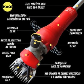 Tosquiadeira Suspensa Máquina Tosa 550W Motor Kit Lâminas Ovelha Carneiro Ovino Cabra 220v KaQi 6676 Tosquiadeira Suspensa Elétrica KaQi 6676 Potência 550 Watts Reais. 2800 RPM. VOLTAGEM: 220v. Surpreenda-se com a Tosquiadeira Máquina de Tosar KaQi 6676-220v. Voltagem 220v. Indicada para aparar e cortar pelos de ovelhas, carneiros, ovinos, caprinos, lhamas, alpacas não indicado para cachorros ou cavalos . aceita tosquias tipo australiana, Tally-Hi, tosquia gaúcha, entre outras técnicas. O animal não precisa ser amarrado, o que reduz o risco de ferimentos e proporciona mais bem estar. Assim, torna a operação mais produtiva e permite a separação do velo inteiro, com melhor classificação e separação das categorias da lã. Seu maior diferencial, um poderoso motor de 550 Watts de potência real, velocidade única 0 - 2800RPM, de alto torque, com chave seletora on/off, o qual pode ser instalado de modo suspenso e conectado à tosquiadeira por meio de chicote flexível de 1,70m com giro de 360 graus. Desta forma, pelo fato do motor não estar acoplado dentro da tosquiadeira, como acontece nas máquinas regulares de tosa elétrica, acaba por não transmitir calor. A tosquiadeira tem regulagem de espessura de corte, empunhadura ergonômica, aletas laterais para dissipação de ar, botão de tensionamento das lâminas permite alterar a espessura do corte , e acesso fácil para colocação de óleo lubrificante. Como o chicote flexível tem sistema de giro de 360 graus, o operador não precisa se preocupar com o fio enrolar conforme muda de posição, já que gira conforme sentido que a máquina é direcionada. Ideal assim, para tornar a operação de tosa mais rápida, prática e fácil no dia a dia. Acompanha duas lâminas de corte, sendo uma superior com 4 dentes, e outra inferior com 13 dentes. São de alta qualidade, dureza e resistência, com pontas afiadas e usinadas, o que evita ferir os animais. Seu sistema de encaixe de lâminas é universal e pode ser utilizado com a maioria das demais lâminas do mercado. Ainda, segue um estojo de proteção da lâmina para evitar batidas ou acidentes que possam resultar na quebra dos dentes durante transporte. Por fim, o corpo da tosquiadeira é feito de PVC durável, leve, ergonômico e confortável, e a cabeça da tosa em liga de alumínio. Resultado disso é uma tosquiadeira com apenas 1,1kg, o que proporciona conforto e agilidade no corte da lã, seja para pescoço, pernas, quanto para costas, abdômen e quadris. Conteúdo da embalagem: 1 Tosquiadeira Elétrica Pro 220v KaQi 6676. 1 Motor 550 Watts. 1 Cabo Elétrico. 1 Chicote Flexível 360 graus. 1 Jogo de Lâminas de Corte. 1 Estojo para Lâmina. 2 Pares de Escovas de Carvão. 1 Bisnaga para Óleo. 2 Chaves para Manutenção. 1 Manual de Instruções. 1 Maleta de Transporte. Especificações: Voltagem: 220v. Cabo elétrico: 1,90m. Plugue: tomada padrão brasileiro 3 pinos 10A . Frequência: 60Hz. Medida da Tosquiadeira: 28 x 10 x 8cm. Peso da Tosquiadeira: 1,1kg. Tamanho da maleta: 40 x 12 x 30cm. Peso total: 5,5kg. : 3 Meses. EAN: 7908840106582. Marca: KaQi.
