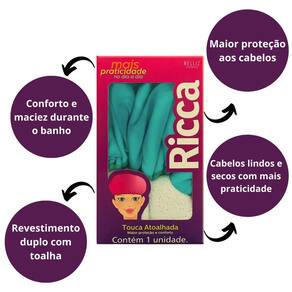 A touca atoalhada Ricca foi desenvolvida para proteger os cabelos e ao mesmo tempo trazer uma sensação de conforto e maciez durante o banho. Revestimento duplo com toalha para maior proteção e conforto.
