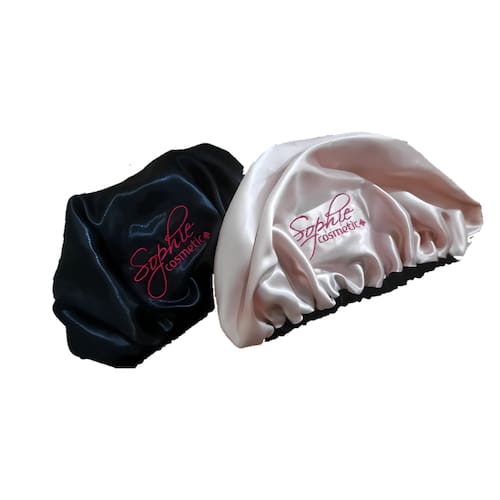 As toucas são ajustáveis Anúncio relativo a uma toca de cetim dupla face
