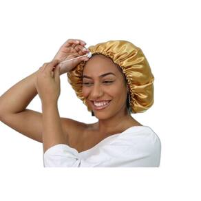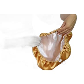 Touca de cetim dupla face dourada e branca ajustável Touca de cetim dupla face com elástico e ponteira ajustável