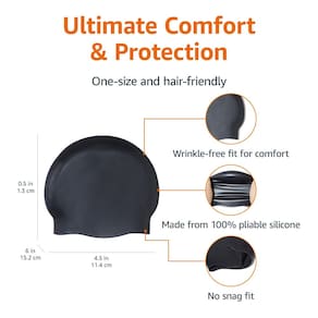 - Inclui uma touca de natação preta unissex feita de silicone 100% flexível; sem PVC e sem látex