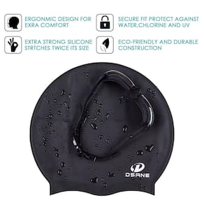 Dsane Touca de natação extragrande para mulheres e homens, touca de natação de design especial para cabelos cacheados muito longos e grossos e tranças de dreadlocks, silicone afros, mantém seu cabelo - Tamanho grande e espaçoso: maior do que a média de toucas de banho (23 x 29 cm/9,1 x 11,4 polegadas de comprimento e largura), esta touca de natação DSANE tem espaço suficiente para caber em qualquer penteado volumoso ou cabelo encaracolado. Projetado para tranças, dreadlocks, crochê mambo, extensões, trança, cabelo muito longo, cabelo afro. Deixe seu cabelo descansar confortavelmente. - Proteção para o cabelo com volume: os nadadores conscientes do cabelo e da saúde sabem que nadar é uma ótima forma de exercício, e embora os produtos químicos agressivos na maioria das piscinas os tornem seguros - eles podem ser extremamente prejudiciais para a condição do seu lindo cabelo. Nossa touca de natação extragrande premium é a melhor forma de defesa. - Unissex e : design conciso e generoso para homens e mulheres; sólidas da moda para atender às escolhas da maioria das pessoas, desfrute de um feliz momento de natação. - Material premium e macio: feito de silicone 100% de boa qualidade para garantir resistência, durabilidade e flexibilidade. Fizemos uma extensa pesquisa e estamos convencidos de que adquirimos o material da melhor qualidade que garantirá que seus cachos, tranças, extensões, torções, dreadlocks ou trama permaneçam protegidos. A tampa DSANE é feita para durar e é livre de BPA. - Acessórios de bônus : o clipe de nariz e os protetores de ouvido estão incluídos no kit (valor de US$ 5), evita que a água entre no nariz e no canal auditivo até certo ponto, para que você possa nadar com a experiência máxima de conforto.