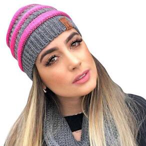 Touca de lã/tricot com abertura para rabo de cavalo cor listrada cinza com rosa . - Confeccionado em linha tricot de alta qualidade; - Perfeito para aquecer nos dias mais frios, combina com tudo e deixa você mais estilosa; - Confortável e extremamente leve; - Tamanho único ajustável, veste de 40 a 62cm; - Composição do material: 100% acrílico; - Produzido no Brasil. MODO DE USAR: Prenda seu cabelo com um amarrador. Depois, ajuste seu cabelo dentro da touca e ajuste a touca. Se você quiser fazer um coque use mais um amarrador para ajustar seu cabelo e prontinho. CUIDADOS: - Deve ser lavado a mão; - Não precisa passar no ferro de passar roupa; - Não colocar na maquina de lavar. Ficha técnica - Tipo de chapéu: Touca - Gênero: Feminino - cor: rosa - Cor: Cinza - Temporada de lançamento: Outono-inverno - Circunferência da cabeça: 40 a 62cm - Com fechamento ajustável: Não - Cor principal: Rosa - É reversível: Não - Fonte do produto: Touca Tricot - Composição: 100% Acrilico - Desenho do tecido: Listrado - cor predominante: rosa - Ano de lançamento: 2021 Marca: C C Ean: 7895244900109