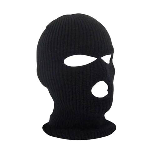 Touca Motoqueiro Balaclava com 3 Furos Adulto de Lã Preta, seu tamanho é de 34x17cm