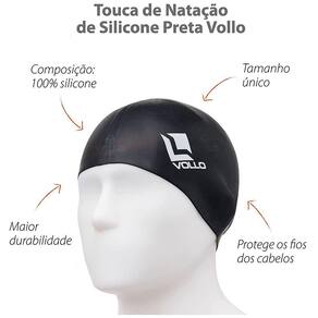 Grandes benefícios para quem pratica natação! A Touca de Natação Preta Vollo é aquele item indispensável para os atletas ou praticantes da natação que não abrem mão de conforto e segurança. Produzida em material de alta qualidade, a touca para natação possui ajuste perfeito, além de durabilidade acima da média. E tem mais, a touca auxilia na retenção do calor contra temperaturas mais baixas e protege os cabelos dos produtos químicos. Para um treino mais eficiente, aposte nessa grande aliada e adquira já a sua Touca de Natação Vollo! Nome do modelo: Touca de NataçãoRef: VN301-1Marca: Vollo SportsCor: PretaMaterial: SiliconeDimensões da embalagem: 28 x 12 x 1 cmPeso: 60 gGarantia do Fabricante: Contra defeito de Fabricação