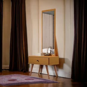 Transforme sua rotina de beleza com o nosso elegante toucador. Com um espelho amplo, este móvel oferece o ambiente perfeito para se preparar com estilo!