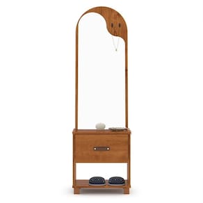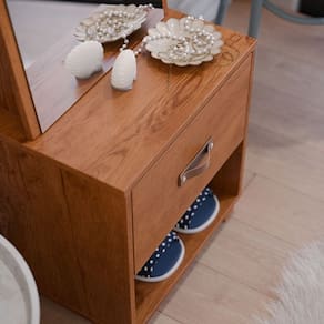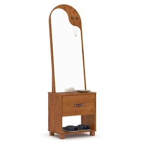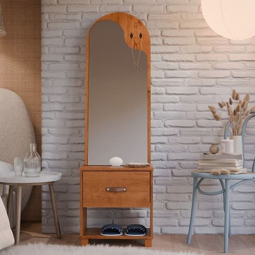 O Toucador Organic - EJ Móveis se adapta facilmente a qualquer ambiente, seja ele uma suíte, closet ou até mesmo um quarto pequeno. Suas linhas suaves e acabamento impecável, conferem um toque de sofisticação ao ambiente, deixando-o ainda mais elegante. O destaque desse móvel estilo penteadeira é o seu amplo espelho, que proporciona uma visão completa do seu rosto e cabelo, permitindo que você faça sua maquiagem ou arrume o cabelo com precisão. Já com a gaveta, você terá espaço suficiente para guardar seus produtos de beleza, como maquiagens, cremes, perfumes e acessórios. Tudo ficará organizado e ao alcance das suas mãos, facilitando a rotina de beleza do seu dia a dia.Dimensões do Produto Montado:Altura: 148cmLargura: 45cmProfundidade: 33cmObservações:– Puxador em Courino– Corrediças Telescópicas– Espelho com Design Organic– Pés em MadeiraMarca: EJ MóveisModelo: OrganicReferência: 51765WATENÇÃO: Não nos responsabilizamos pela montagem deste produto. Aconselhamos a contratação de um profissional.
