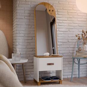 O Toucador é a escolha ideal para você que busca praticidade, beleza, conforto e organização na hora de se arrumar! O toucador com espelho para quarto vai deixar o seu quarto sofisticado e organizado com facilidade e eficiência. Com espelho articulado de corpo inteiro, esse toucador oferece a praticidade de movimentar o reflexo de acordo com a sua necessidade.