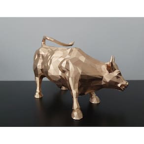 Exclusivo Touro da Bolsa de Valores Wall Street em design Low Poly (geométrico) para uma decoração moderna e diferenciada, criado utilizando impressão 3D.