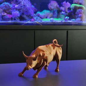 A Estátua Touro Wall Street é uma réplica decorativa, impressa em 3D, do icônico símbolo da Bolsa de Valores.