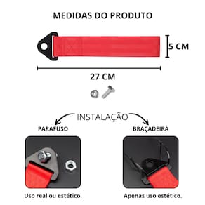 CONTEÚDO DA EMBALAGEM: - 1 Cinta Reboque da marca ESTILO BR; - 1 Parafuso M10 de Aço; - 1 Porca M10.