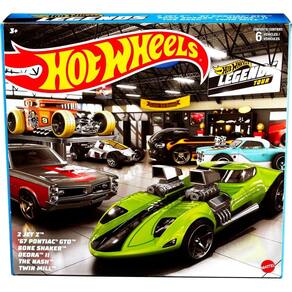 Pacotes múltiplos Hot Wheels HW Legends de 6 carros de brinquedo, escala 1:64, decorações autênticas, peças fundidas populares, rodas giratórias, presente para crianças de 3 anos ou mais e colecionadores