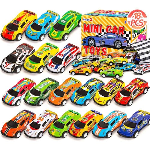 -?Conjunto Pull Back Cars?O conjunto de carrinhos de brinquedo SevenQ para crianças inclui 18 carros retráteis e uma bolsa de armazenamento, oferecendo uma variedade de veículos de cores vivas. Os modelos de carros vívidos certamente empolgarão as crianças e trarão horas de aventuras divertidas e imaginativas!