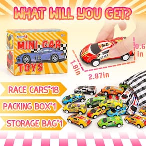 -?Mini Cars Toys?Os carros pequenos para crianças têm cerca de 2,87* 1,18 polegadas de comprimento, perfeitos para as mãos pequenas de crianças segurarem e operarem facilmente, e podem ser facilmente guardados em uma bolsa ou bolso para brincar ao ar livre. Pode estimular a curiosidade e a imaginação das crianças e ajudar a desenvolver habilidades motoras finas e coordenação olho-mão.