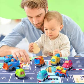 -?Brinquedos educativos perfeitos para crianças?Vem com o mapa de ruas da cidade. Com um tapete multifuncional impresso em uma rua da cidade, as crianças podem simular a cena do trânsito urbano. Incentivar a coordenação olho-mão, melhorar a identificação e melhorar as ferramentas educacionais de aprendizagem. Brinquedos para meninos e meninas de 2 anos. Brinquedos para meninas 2 3 4.