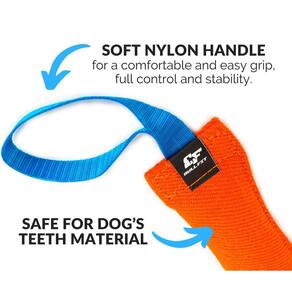- Não é um brinquedo para roer - Os brinquedos Tug servem apenas para puxões interativos entre você e seu cão, não para brinquedos para mastigar. Observe que as alças da almofada de mordida não foram projetadas para o cão morder, mas são apenas para uso do treinador. Sempre supervisione.