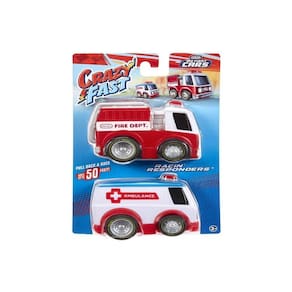 VEÍCULOS DE EMERGÊNCIA LITTLETIKES 659461 Este pacote de 2 veículos de emergência, incluindo um caminhão de bombeiros e uma ambulância, é ideal para uma aventura imaginária! Os veículos de desempenho Crazy Fast são veículos supercarregados e recuáveis que funcionam com velocidade e distância épicas. Basta recuar e deixá-los voar. Idade recuperada: + 3 anos.