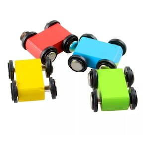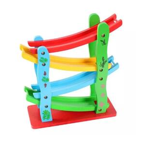 Especificações: Feito de material de madeira ecológico, durável, não danifica a pele do bebê. Modelo de carro de mini velocidade, movido por inércia, fácil de jogar. Divertido de jogar, o piloto sai do estacionamento superior e depois desliza pela pista de corrida Rainbow Little Boys. Inclui 4 carros