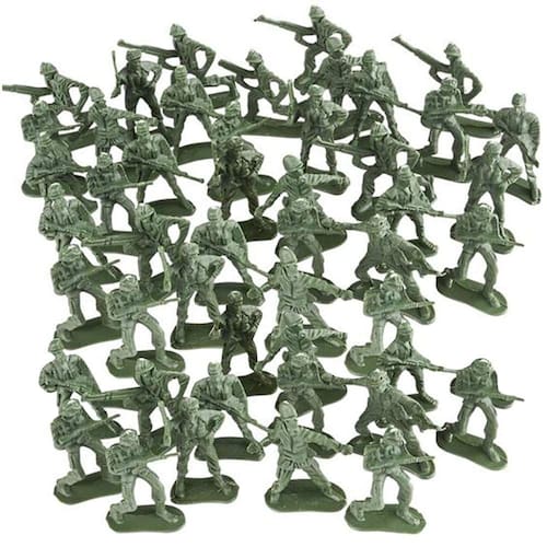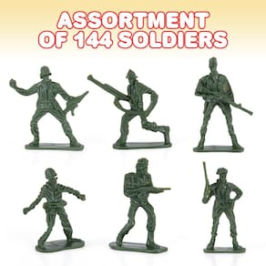 Homens verdes clássicos para muita diversão. Um batalhão inteiro Dê ao seu pequeno tudo o que ele precisa para reencenar grandes guerras, se envolver em horas de jogo de conta e reivindicar doce glória a cada vitória no campo de batalha! Este conjunto vem com 144 soldados de brinquedo do exército em uma variedade de poses prontas para a batalha. Os militares verdes são perfeitos para brincadeiras imaginativas, militares decorações de festa ou como um item colecionável para adultos apaixonados por brinquedos clássicos. Feito com plástico de alta qualidade, estes homens do exército vão provocar sorrisos por muito tempo. Ótimo para presentear Se você está procurando lembrancinhas de festa para a festa de aniversário do seu filho, suprimentos de festa do exército, prêmios para o carnaval ou concurso infantil ou apenas um presente legal para fazer Dia da sua torta fofa, estes bonecos do exército certamente serão um sucesso! Inspire uma onda de sorrisos e risadas sem ter nada a perder. É por isso que você vai adorar estes homens do exército: ? Vem em um pacote de 144 para dar a você um ótimo valor. ? Projetado em poses variadas para brincadeiras imaginativas imersivas. ?Cada boneco de 5 cm é feito usando plástico durável. ? Bases de plástico garantem que os brinquedos fiquem na vertical. ? Perfeito como um conjunto de presente, lembrancinhas de festa ou decorações do exército. Abasteça brincadeiras cheias de ação com um conjunto do exército com mais estatuetas em cada pacote! - PACOTE DE 144: Faça aqueles pequenos amantes da ação sorrirem enquanto obtém o melhor retorno para o seu dinheiro! Este conjunto de soldados de brinquedo de plástico vem com um total de 144 mini homens do exército. Perfeito para brincar ou decorar, estes bonecos de soldados de brinquedo são uma receita para sorrisos instantâneos. - Classificação de poses: Estimule a imaginação dos pequenos e mantenha-os ocupados por horas. Os soldados de brinquedo inspiram brincadeiras imersivas com suas poses variadas, congeladas no tempo no campo de batalha. O presente perfeito de Natal ou aniversário para meninos e meninas a partir de 3 anos - Projetado para durar: sabemos o quão entusiasmado pode ficar brincando. É por isso que projetamos nossos soldados do exército de 5 cm usando plástico durável. Cada um dos brinquedos masculinos de plástico do exército fica na vertical em uma pequena base; isso os torna ideais para uso como decoração do exército em festas e quartos. - Favoritos de festa divertidos: Procurando lembrancinhas de festa de aniversário do exército que meninos e meninas vão adorar? Enchimentos de sacos de guloseimas para fazer desses sacos de guloseimas um sucesso? Estes homenzinhos verdes são o deleite perfeito. Eles também são ótimos como enchimentos de piñata, enfeites de natal e prêmios de caixa de tesouro de sala de aula.