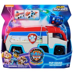 - PAW PATROL Veículo de filme: o Pup Squad Patroller & Chase Racer apresentam design e estilo genuínos da Patrulha Canina: The Mighty Movie, então esses carros de brinquedo se parecem com os veículos Mighty Pup do filme