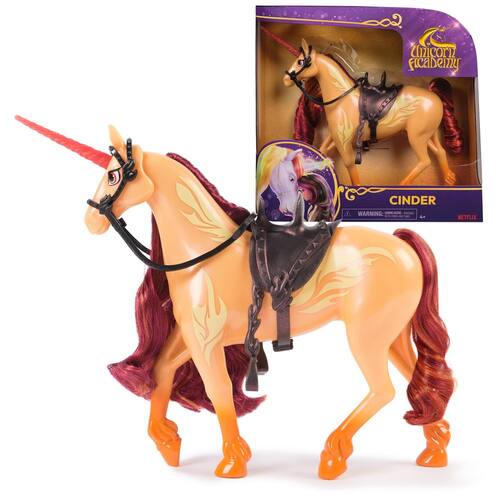 Unicorn Academy, Cinder com 2 acessórios de equitação, 28 cm, compatível com Valentina, bonecas e brinquedos de unicórnio para meninas a partir de 4 anos - Brinquedo oficial de unicórnio de 28 cm: baseado no popular programa NETFLIX e livros infantis mais vendidos, Cinder ardente ganha vida com detalhes fiéis – marcas Fire Magic, um chifre de glitter majestoso e crina longa e cauda - MOVIMENTO REALISTA DA CABEÇA: mova e gire a cabeça de Cinder para fazer sua personalidade brilhar. Os acessórios de boneca Cinder e sela são removíveis; escove sua crina e rabo com a ferramenta de estilo Valentina (boneca vendida separadamente) - Combine com a boneca Valentina: experimente o vínculo mágico entre unicórnio e cavaleiro com Valentina. Coloque Valentina e monte Cinder na aventura, recriando histórias de brincadeiras inspiradas no programa - Colecione todos: unicórnios, bonecas e acessórios Unicorn Academy (brinquedos femininos vendidos separadamente) vão despertar histórias imaginativas. Presentes divertidos de unicórnio, presentes de aniversário e presentes para qualquer ocasião - Traga a aventura para casa: expanda seu mundo Unicorn Academy com bonecas, unicórnios, pequenas bonecas, bichos de pelúcia, pelúcia e muito mais. Brinquedos de unicórnio emocionantes para meninas de 4 a 6 anos ou mais - Inclui: 1 unicórnio, 1 sela removível, 1 freio removível - Coberto pelo compromisso Spin Master Care. Veja abaixo os detalhes completos