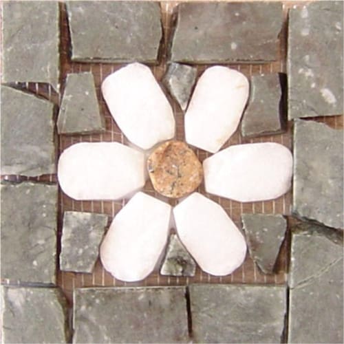 Especificações técnicas do mosaico: Feito com pedras - Mármores e granitos de todo o e importados da Europa e Ásia - para obter todas as cores desejadas em pedras is; Vem todo montado sobre tela, só colocar conforme manual de colocação, Resistência e Durabilidade em área interna e externa; Espessura de 10 mm Mesma espessura do porcelanato ou piso cerâmico Liso e agradável para uso diário; Mosaico feito integralmente à mão com técnica do mosaico romano;