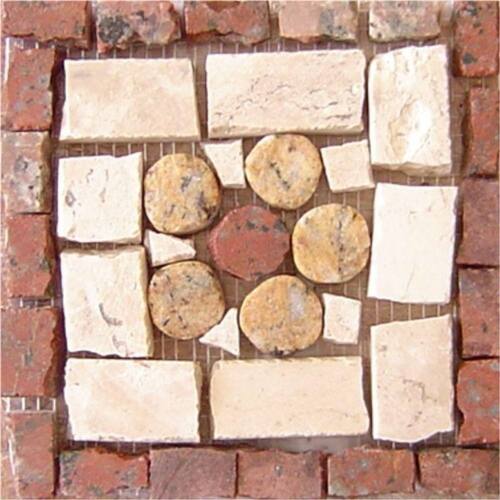 Especificações técnicas do mosaico: Feito com pedras - Mármores e granitos de todo o Brasil e importados da Europa e Ásia - para obter todas as cores desejadas em pedras naturais; Vem todo montado sobre tela, só colocar conforme manual de colocação, Resistência e Durabilidade em área interna e externa; Espessura de 10 mm Mesma espessura do porcelanato ou piso cerâmico Liso e agradável para uso diário; Mosaico feito integralmente à mão com técnica do mosaico romano;