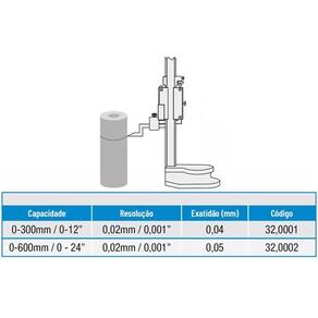- Capacidade: 0 a 300mm/0 a 12;