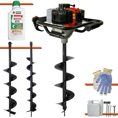 Perfurador De Solo Vant VPS52 Á Gasolina 2T 52cc 2HP Com Brocas 80x10cm + Broca 80x15cm + Broca 80x20cm + ÓLEO CASTROL STIHL 500ml