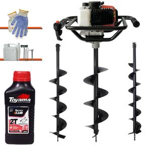 Perfurador De Solo Vant VPS52 Á Gasolina 2T 52cc 2HP Com Brocas 80x10cm + Broca 80x15cm + Broca 80x20cm + Óleo TOYAMA LUB FG50 500ml 2T
