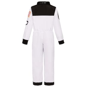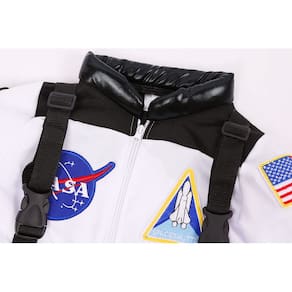 - Traje de astronauta — O traje de piloto de astronauta da NASA inclui um macacão branco com emblemas bordados das bandeiras da NASA e dos EUA.