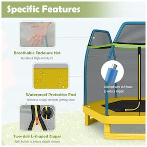 Descrição Este trampolim redondo de segurança ajudará os seus filhos a melhorar as suas capacidades de salto, ao mesmo tempo que promove o seu metabolismo corporal e melhora a sua imunidade. É caracterizado por uma forte estrutura de aço galvanizado e base triangular para aumentar a estabilidade, e a cerca de segurança está firmemente conectada à plataforma de salto para eliminar lacunas perigosas e proteger os pés do bebê contra lesões. A capa protetora de espuma EPE evita que seu filho colida acidentalmente ao pular livremente. Nosso trampolim é o presente perfeito para as crianças. Características Há uma rede protetora externa para proteger seu filho ao pular Rede protetora externa com zíper em forma de L, centro de atividades em grande escala Força de mola forte, grande força de tração, sem deformação A rede de segurança fortalece o amortecedor e tem forte resistência ao impacto Almofada de plataforma PP, desgaste capa protetora de espuma EPE resistente e de boa resiliência para evitar choques acidentais Pano Oxford acolchoado não belisca os pés do bebê Promove aumento de altura, melhora o efeito físico Especificações Material Aço galvanizado, PP, EPE Dimensão total 7,3 pés x 7,3 pés x 6,1 pés C x L x A Peso líquido 55 libras Capacidade de peso 220 libras O pacote inclui 1 x trampolim 1 x manual do usuário Rede de gabinete respirável Zíper em forma de L O trampolim infantil está equipado com uma rede de gabinete respirável. Ele não apenas mantém seu filho , mas também ajuda você a ficar de olho nos movimentos do seu filho. O zíper em forma de L tem um fecho aderente que é mais do que o zíper comum e pode garantir um melhor fechamento quando eles brincam. Trampolim de segurança para crianças O design perfeito entre a cerca e a almofada, para que seu filho não fique preso no vão. O protetor de espuma EPE evita que seu filho bata acidentalmente ao pular livremente. E o grande tapete de plataforma circular de 83 polegadas de diâmetro oferece espaço suficiente para as crianças. Estrutura galvanizada resistente Este trampolim infantil de 7 pés é composto por uma estrutura de aço galvanizado e uma base triangular reforçada. Ele pode suportar um peso de 220 libras e evitar efetivamente que escorregue ao pular da plataforma. Longa vida útil Anexado com mola espessa anti ferrugem, alta elasticidade, sem deformação, para garantir o uso a longo prazo. A almofada da plataforma de salto é confeccionada em material PP, com elasticidade de alta qualidade, permitindo que as crianças pulem mais alto e mais felizes. Presente perfeito para crianças. Dimensão geral 7,3 pés x 7,3 pés x 6,1 pés C x L x A. Este trampolim recreativo será um destaque atraente para o seu quintal e servirá como um centro de atividades ao ar livre para o seu tempo semanal de diversão em família, garantindo que seus filhos e amigos caiam na gargalhada todos os dias. O presente perfeito para crianças