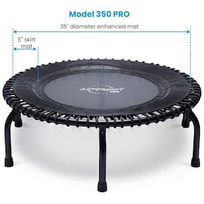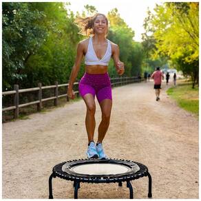Este trampolim foi projetado com pernas arqueadas sem risco de queda, cordas elásticas ajustáveis e um tapete melhorado para proporcionar uma grande área de superfície, com bastante liberdade de movimento. Trampolim de fitness com 7 configurações de tensão ajustáveis, permitindo personalizar a firmeza do tapete para um salto ideal, perfeito para treinos de alta intensidade, treinos em grupo ou individuais. Oferece um salto praticamente silencioso, suave, acolchoado e ao mesmo tempo animado, com pernas arqueadas que garantem estabilidade extra contra qualquer possível queda, oferecendo mais segurança. A construção de nível comercial possui tubos de aço de 16 gauge, garantindo durabilidade incomparável e desempenho de longa duração; inclui DVD 4 em 1 com exercícios para o core e fortalecimento. Ideal para indivíduos com peso de até 136 kg. As dimensões do trampolim são 99 cm de comprimento, 99 cm de largura e 32 cm de altura. Peso: 15 kg.
