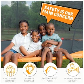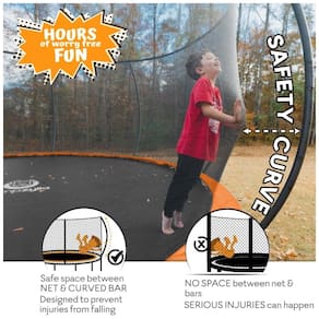 A diversão e segurança do seu filho - Nossa responsabilidade! Para a segurança da sua família, inovamos nossos trampolins para crianças e adultos com postes curvos de última geração, projetados para proteger contra acidentes ou lesões. Os trampolins Jumpzylla atendem à norma de segurança ASTM F381-16. Nunca comprometemos segurança ou qualidade, nossa missão é oferecer um trampolim resistente para horas de diversão sem preocupações.