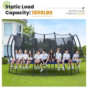 Suporte de Peso Aprimorado: O trampolim Zupapa foi projetado com uma estrutura de camada dupla e tubos de aço reforçados, garantindo durabilidade mesmo sob altas tensões. Com uma capacidade estática de 816 kg e capacidade dinâmica de 250 kg, este trampolim é feito para suportar mais do que nunca. Ele conta com uma rede de segurança de alta resistência, tecida para suportar impactos intensos, e molas reforçadas que mantêm excelente elasticidade sem deformação.