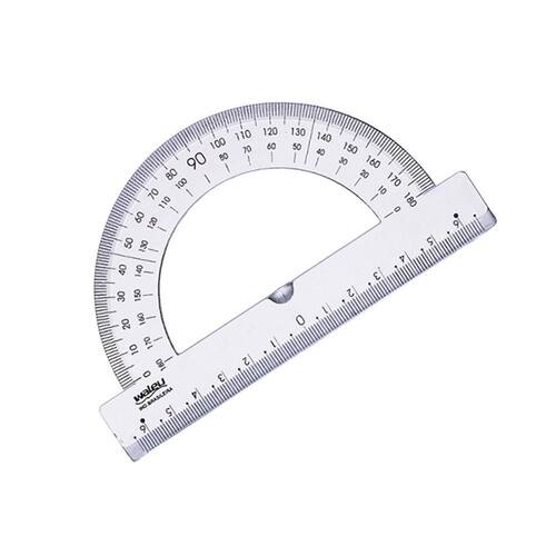 - O Transferidor Plástico chanfrado Waleu 180º é resistente e perfeito para medições e realização de trabalhos escolares. - Composição/Material: Poliestireno. - Escala: 180º. - Cor: cristal.