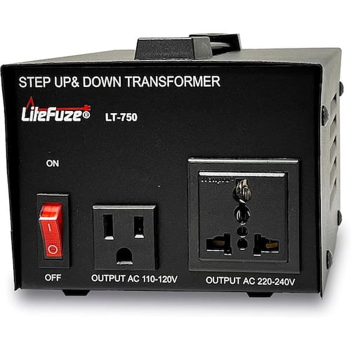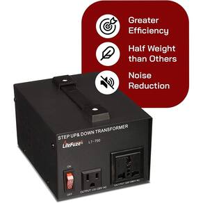 LiteFuze Conversor de tensão de 750 Watt Step Up/Down – Conversor de energia de 110 V para 220 V/220 V para 110 V – Cabo totalmente aterrado – Tomada universal, certificado CE [5 anos de garantia] - Soquete de saída universal - equipado com uma tomada universal que aceita plugue de quase qualquer país do mundo e completamente aterrado da entrada à saída para uma operação segura. - Tecnologia ConvertingboxTM – usa transformador toroidal para eficiência, operação sem ruído e conversor de tensão mais compacto com cerca de metade do tamanho e menos peso em comparação com os transformadores tradicionais. - Proteção de fusível - protege seus eletrônicos e o transformador de sobrecarga de energia ou tensão. O fusível cortará a energia do transformador durante a sobrecarga e você pode facilmente substituir o fusível para redefinir o transformador. Os transformadores LiteFuze são projetados com segurança em mente e são certificados pela CE e incluem garantia do fabricante líder do setor de 5 anos. - Operação intensiva para cima/baixa – Converta 110/117/120V CA para 220/230/240V CA ou 220/230/240V CA para 110/117/120V CA. Defina o interruptor de tensão de entrada na parte traseira com base na tensão do país e conecte seu aparelho à tomada apropriada na frente. Observe que esses transformadores apenas convertem a tensão e a saída Hz (frequência) permanece a mesma que a entrada. - Bobina de cobre Litetime – cada transformador é enrolado com bobina e fio premium para garantir um desempenho confiável e eficiente por um longo período de tempo. Estes transformadores não são projetados para operar em US 220V e não são compatíveis com aparelhos US 220V. Você pode usá-los para alimentar eletrônicos dos EUA no exterior em um país de 220V ou usar eletrônicos de 220V na América do Norte em 120V. Selecione um transformador de tensão de tamanho adequado verificando a potência máxima em W ou WATT em seus eletrônicos e, em seguida, compre um transformador de pelo menos 1,25 x esse tamanho para contabilizar quaisquer picos ou picos durante a operação.