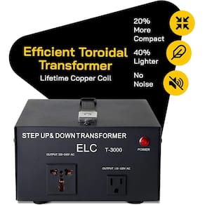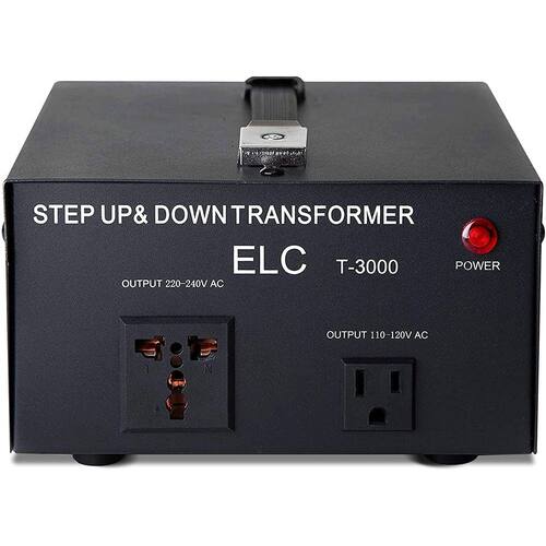 ELC Transformador conversor de tensão de 3000 watts da série T – Step Up/Down – Conversor de energia de 110 V para 220 V/220 V para 110 V – Proteção do disjuntor, certificação CE [3 anos de garantia] - Capacidade máxima de até 3000 watts (Step Up/Down) - Transformador conversor de tensão. Heavy Duty Step Up/Down (conversor de 220 V para 110 V, conversor de 110 V para 220 v) - Observação: este conversor é projetado apenas para 220V europeu/asiático (monofásico), não funcionará com American 220 (fase dupla, não projetado para US 220V) - Este dispositivo transformador não faz barulho durante o uso, é completamente silencioso e fácil de usar e não ocupa muito espaço - Este transformador conversor de tensão tem uma nova tecnologia de transformador toroidal eficiente para garantir a eficiência. É 20% mais leve do que os transformadores tradicionais. Peso: 6,8 kg, Dimensões: 34,3 cm x 26 cm x 16,5 cm - Este transformador conversor de tensão tem proteção dupla de disjuntores para cada tensão (120 V e 220 V). Nossas unidades são certificadas pela CE