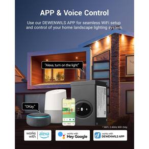 transformador de baixa tensão - ?Controle de voz e controle remoto?O transformador inteligente de baixa tensão Dewenwils funciona com Alexa e Google Home Assistant, controle suas luzes de paisagismo simplesmente dando comandos de voz para ele ou pelo seu smartphone; não é necessário hub. - ?Função de programação e temporizador?4 modos de temporizador estão disponíveis - temporizador programável, temporizador de contagem regressiva, feriados aleatórios, modos aleatórios de segurança, modo circular. O modo de férias permite que você passe férias com mais segurança e confiança. 300 W, converte tensão doméstica de 120 V CA para tensão de segurança CA de 12 V/14 V, proporcionando um nível de corrente elétrica mais seguro e prático. - ?Fácil de configurar e instalar?Conecte-o à Internet através de rede Wi-Fi (apenas 2,4 GHz) para controlar os holofotes em qualquer lugar e a qualquer momento. Orifício para pendurar embutido, cabo de alimentação de 1 m, monte diretamente em paredes externas. - ?Seguro e à prova de intempéries?Proteção contra sobrecarga, ele se quebra automaticamente quando a corrente excede o limite, evitando danos aos dispositivos conectados, protegendo suas luzes com segurança. Material de metal de alto desempenho, protege o transformador da chuva, neve, poeira e abrasão, resiste a anos de uso. - ?Ampla aplicação?Compatível com todos os LED de baixa tensão de 12 V, iluminação de paisagem de halogênio, como holofote, luz de caminho, luz de jardim, recurso de água etc. Você pode conectar os transformadores Wi-Fi de baixa tensão através do aplicativo Dewenwils.