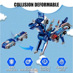 Brinquedo de carro transformador de dinossauro, brinquedo transformador automático, carro transformador de colisão, carros que se transformam em dinossauro, para transformador de carro, brinquedos de dinossauro, meninos e meninas - ?Característica mágica?: O brinquedo de carro transformador de dinossauro, dois carros transformam dinossauro, brinquedo que combina dinossauros e carros em um, experimenta uma colisão e transformação cativantes e encantadoras. Apresenta uma cena incrível onde os carros que se transformam em dinossauros mostram seu charme único. - ?Brinquedos educativos?: Estes brinquedos transformadores de carro desenvolvem criatividade e habilidades de resolução de problemas, transformando brinquedos de carro para meninas e meninos - ?Segurança?: Feito de material ABS não tóxico, o brinquedo de carro transformador de dinossauro passa por testes rigorosos para atender aos padrões de segurança e é altamente durável, seja o brinquedo transformador automático ou o carro transformador de dinossauro - ?Escolha ideal de lembrança?: com design exclusivo e conceito de jogo fascinante, é perfeito para aniversários, festivais e outras ocasiões. Os carros magnéticos transformadores e vários carros de dinossauro formadores são excelentes opções nestes momentos - ? social?: Estimule a interação social durante o jogo. Amigos podem se revezar batendo em seus carros, como o carro dinossauro em transformação, e vivenciando a magia de se transformarem juntos, promovendo o trabalho em equipe e a camaradagem