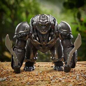 ANIMATRONIC DE CONVERSÃO AUTOMÁTICA: O brinquedo animatrônico Optimus Primal converte automaticamente entre os modos robô e gorila ao som da sua voz