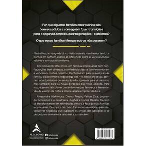 Por que algumas famílias empresárias são bem-sucedidas e conseguem fazer transições para a segunda, terceira, quarta gerações – e até mais? O que essas famílias têm que outras não possuem? Neste livro, ao longo de cinco histórias reais, mostramos tanto os pontos em comum quanto as diferenças entre as várias culturas, valores e estruturas familiares. Em momentos diferentes, em famílias empresárias com configurações bem diversas, as referências deste livro enfrentaram e venceram muitos desafios. Contribuíram para a evolução da família, do patrimônio e dos negócios — e, nesse processo, abriram oportunidades de evolução não somente para si mesmos, mas também para as novas gerações que virão adiante. Para isso, é essencial cultivar um ambiente que favoreça a transmissão de valores da cultura empresarial e empreendedora. Alessandra Nishimura, Dirceu Pezzin, Felipe Zica, Leonardo Schneider e o casal Sara Hughes e Carlos Renato Trecenti se transformaram em referências dentro e fora de suas famílias empresárias. Exemplos de como fortalecer as relações para desenvolver negócios que superam os limites das gerações e se perpetuam de maneira saudável e sustentável.