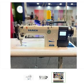 Máquina de costura reta industrial MAQI de transporte duplo (dente e calcador alternante) base plana com motor Direct Drive Eletrônica.