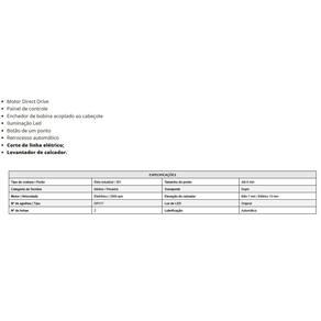 Máquina de costura transporte duplo eletrônica com lubrificação automática e corte de linha. Ideal para couro, estofados, lonas e tecidos grossos. Possui sistema eletrônico com ajustes digitais de velocidade e pontos, motor moderno silencioso, econômico e projetado para uso contínuo. Acompanha mesa e acessórios.Funções