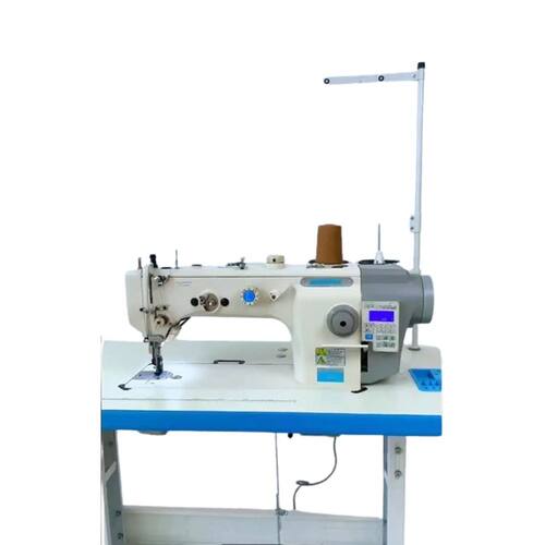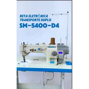 SM-5400-D4 Maquina de costura reta 1 Agulha ponto fixo, com Motor Direct-Drive Eletrônico embutido no cabeçote, posicionador de Agulha, Controle de Velocidade, luz de LED embutida, sistema de estica fio e lançadeira rotativa, Corte de Fio automático, levantador de calcador automático, arremate inicial e final, caça-fio eletromagnético, para Material PESADO, TRANSPORTE DUPLO Superior e Inferior, comprimento do ponto 8mm, Altura do Calcador 8-16mm. Velocidade 2000 RPM, Versão 220V.