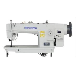 Reta transporte triplo Direct Drive de 1 agulha (agulha, dente e calcadores), possui lançadeira grande horizontal de lubrificação automática e tamanho de ponto 8mm. Além disso possui enchedor de bobina acoplado ao cabeçote, ajuste de controle de velocidade e posição de agulha automática via painel de comando. Control box e painel de comando integrado ao cabeçote, simplificando a montagem.