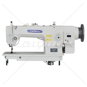 Reta transporte triplo Direct Drive de 1 agulha (agulha, dente e calcadores), possui lançadeira grande horizontal de lubrificação automática e tamanho de ponto 8mm. Além disso possui enchedor de bobina acoplado ao cabeçote, ajuste de controle de velocidade e posição de agulha automática via painel de comando. Control box e painel de comando integrado ao cabeçote, simplificando a montagem.