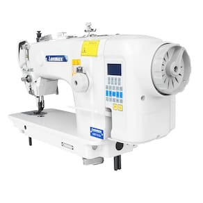 LM-0718T-D4-ALL Reta Eletrônica, 01 agulha, transporte triplo (dente, agulha e calcador) motor Direct Drive, lançadeira grande e lubrificação automática. Possui painel embutido, levantamento de calcador e corte de linha automático, costura e retrocesso programável e ponto de 8mm. Posicionador de agulha em cima e/ou embaixo, led de iluminação e controle digital de velocidade. Voltagem 220V e 60Hz. Indicada para materiais como; couro natural ou sintético, lona e PVC. Reta Eletrônica, 01 agulha, transporte triplo (dente, agulha e calcador) motor Direct Drive, lançadeira grande e lubrificação automática. Possui painel embutido, levantamento de calcador e corte de linha automático, costura e retrocesso programável e ponto de 8mm. Posicionador de agulha em cima e/ou embaixo, led de iluminação e controle digital de velocidade. Voltagem 220V e 60Hz. Indicada para materiais como; couro natural ou sintético, lona e PVC. Pode ser usada na confecção de calçados, jaquetas, estofados entre outros materiais. Vantagens: – Baixo nível de ruído e vibração – Função ponto-a-ponto (dispensa o manuseio do volante) – Economia de energia – Alívio de fadiga do operador - Envio feito via transportadora ( 2 caixas, maquina+mesa) Montagem por conta do Comprador
